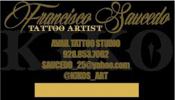 I designed these custom business cards for aspiring artist and tattooist Kiko. These were custom made and specialty printed with a matte black and gold ink.